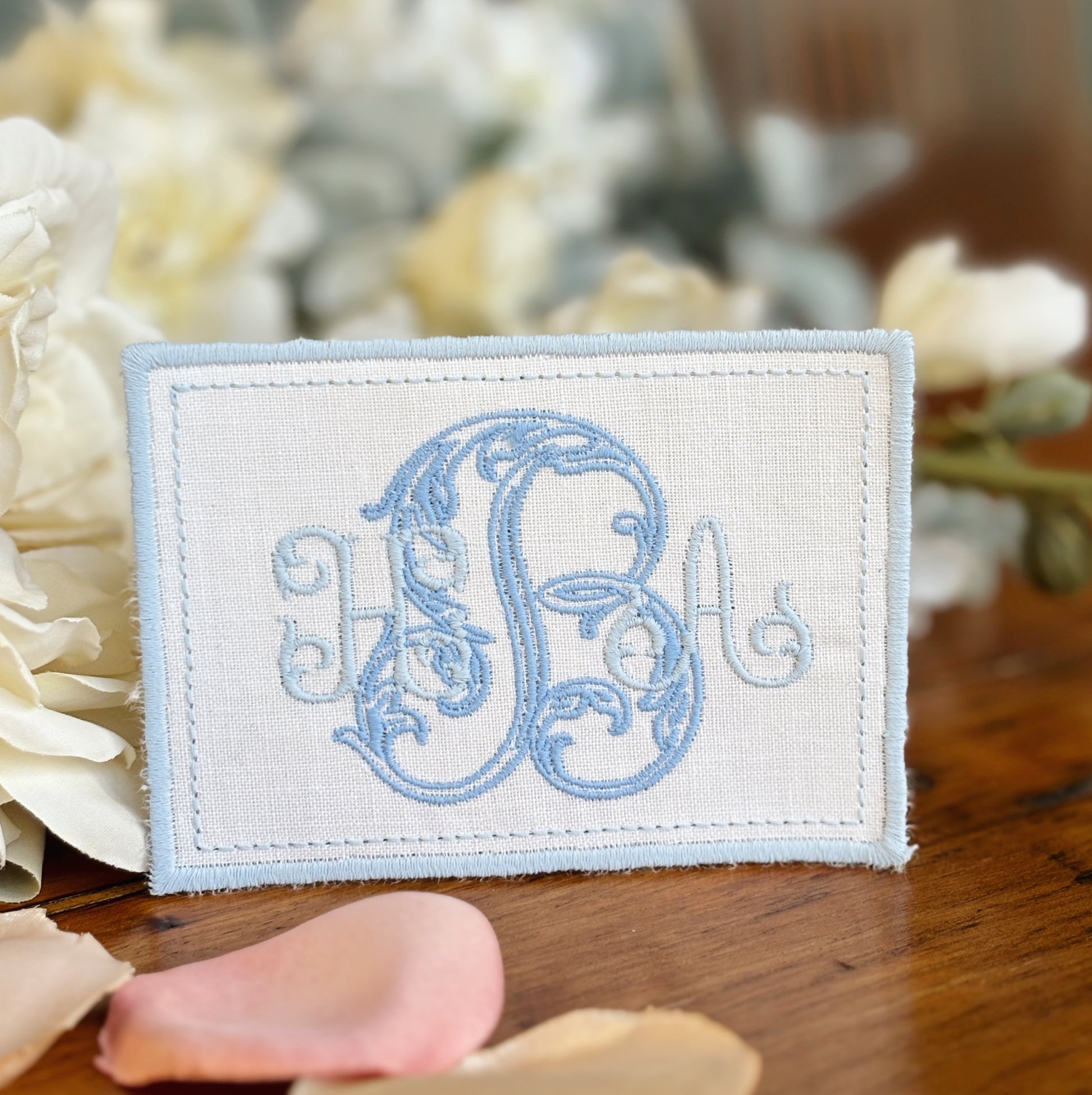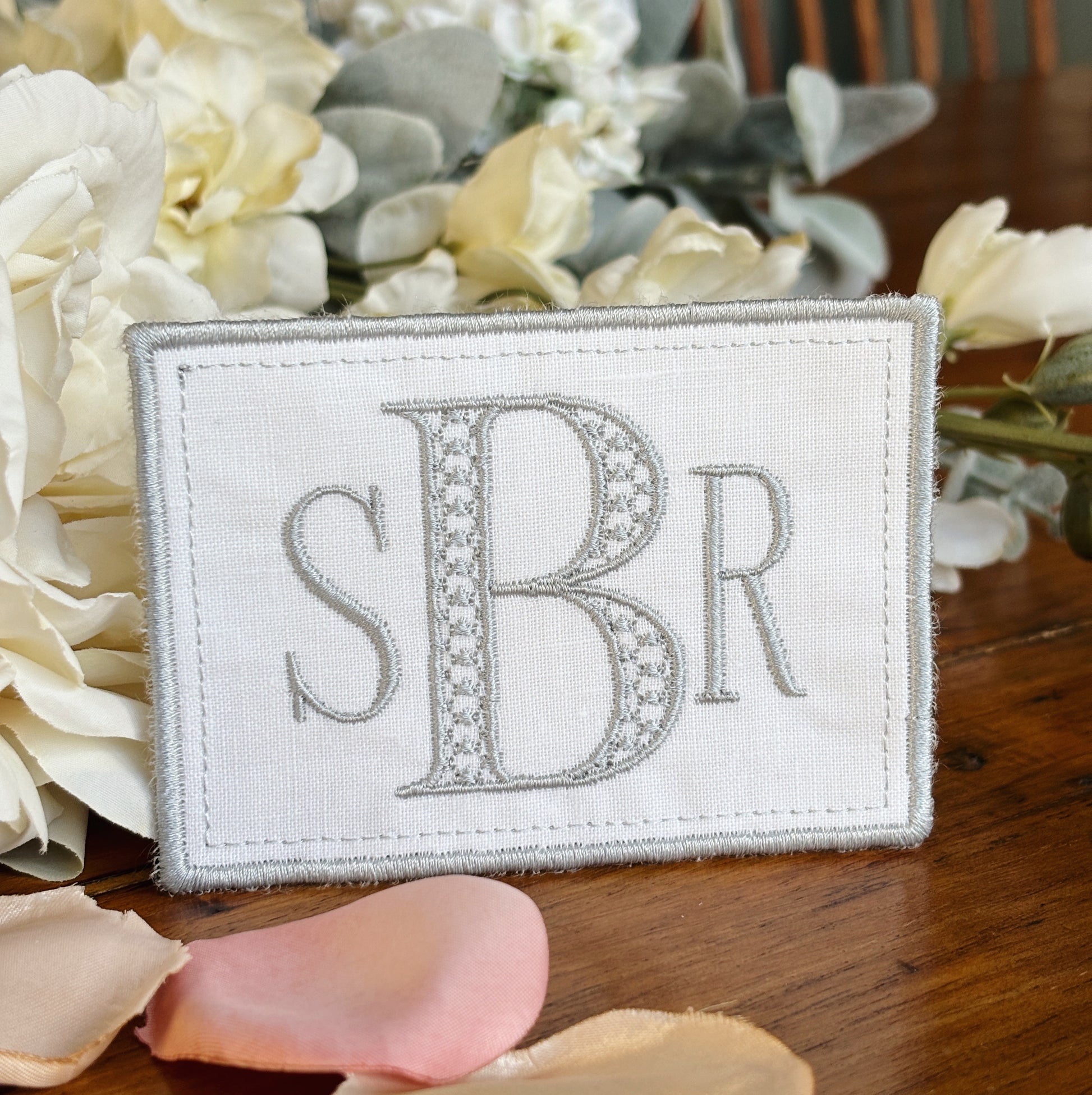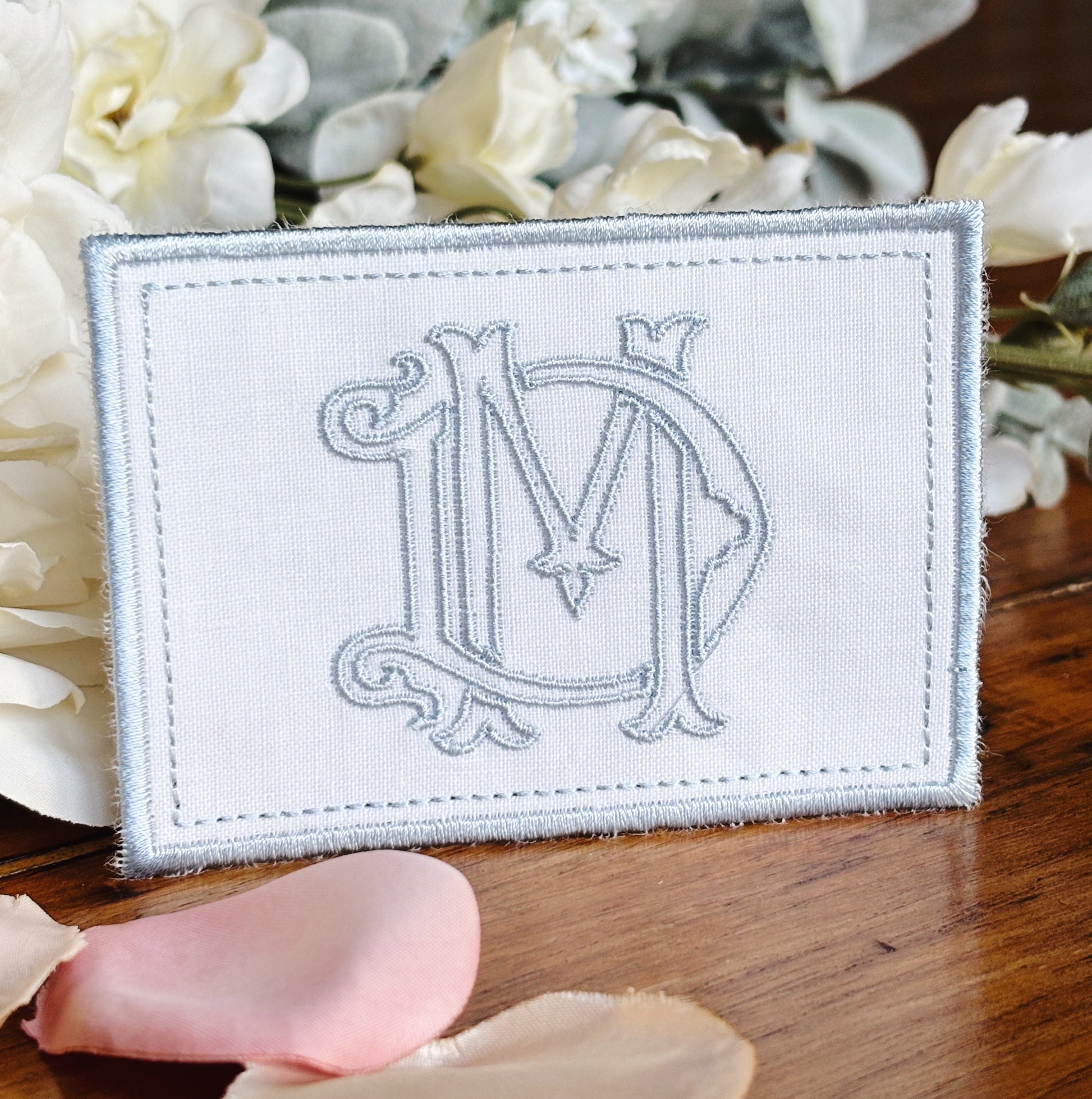 Make the bride's day extra special with a custom embroidered patch wedding dress label, serving as her "something blue" and a personalized bridal shower gift from Mom. This thoughtful gesture adds a personal touch to her wedding day attire, creating a cherished memento of love and support.
